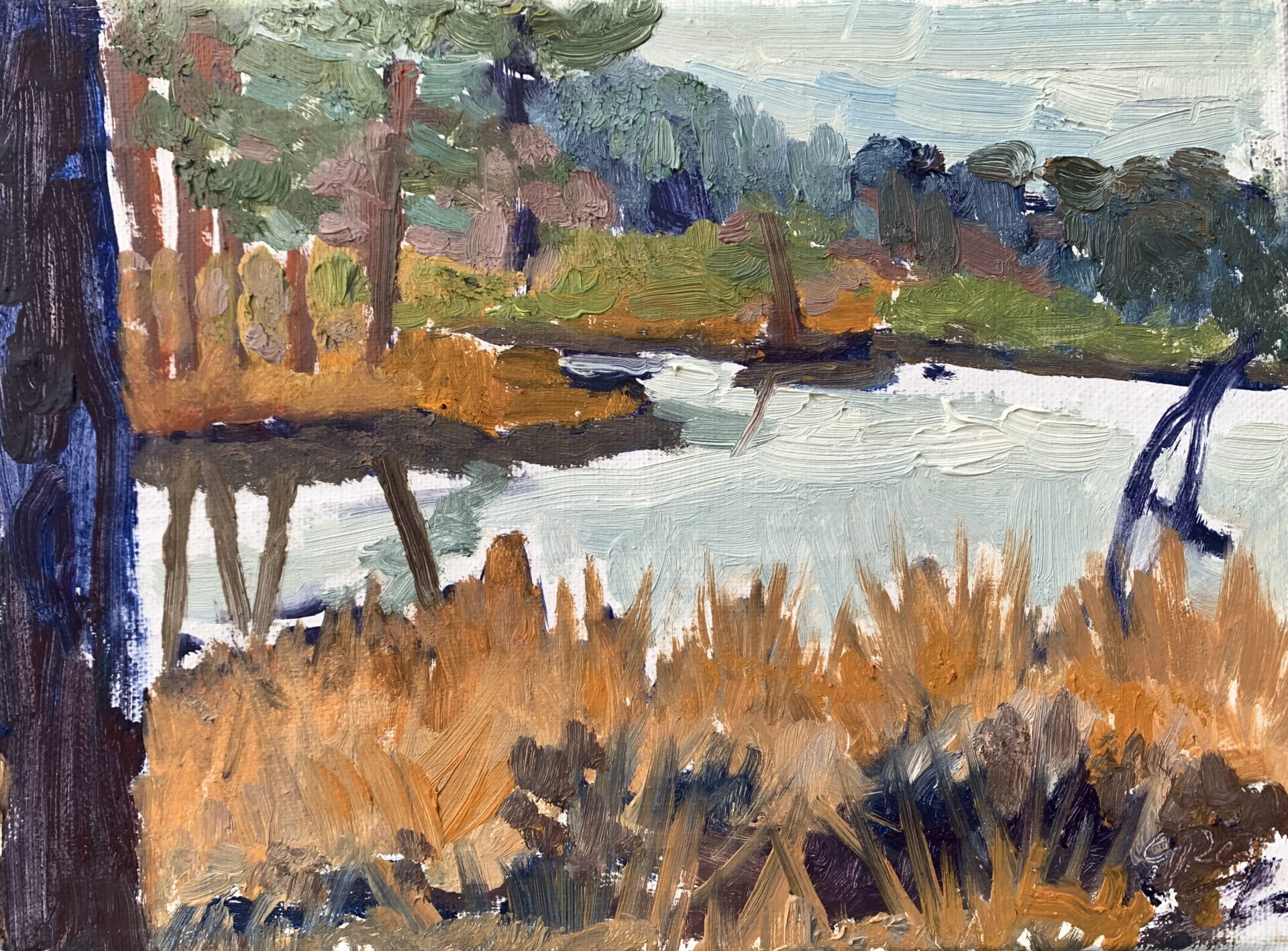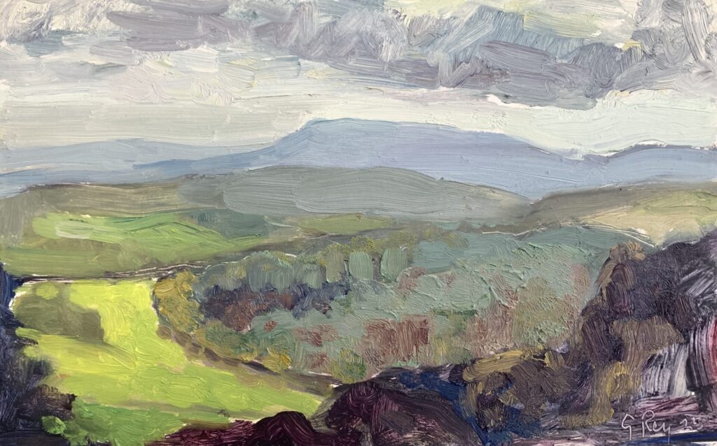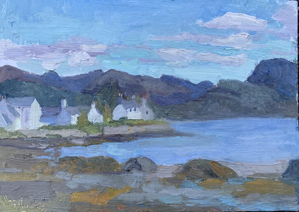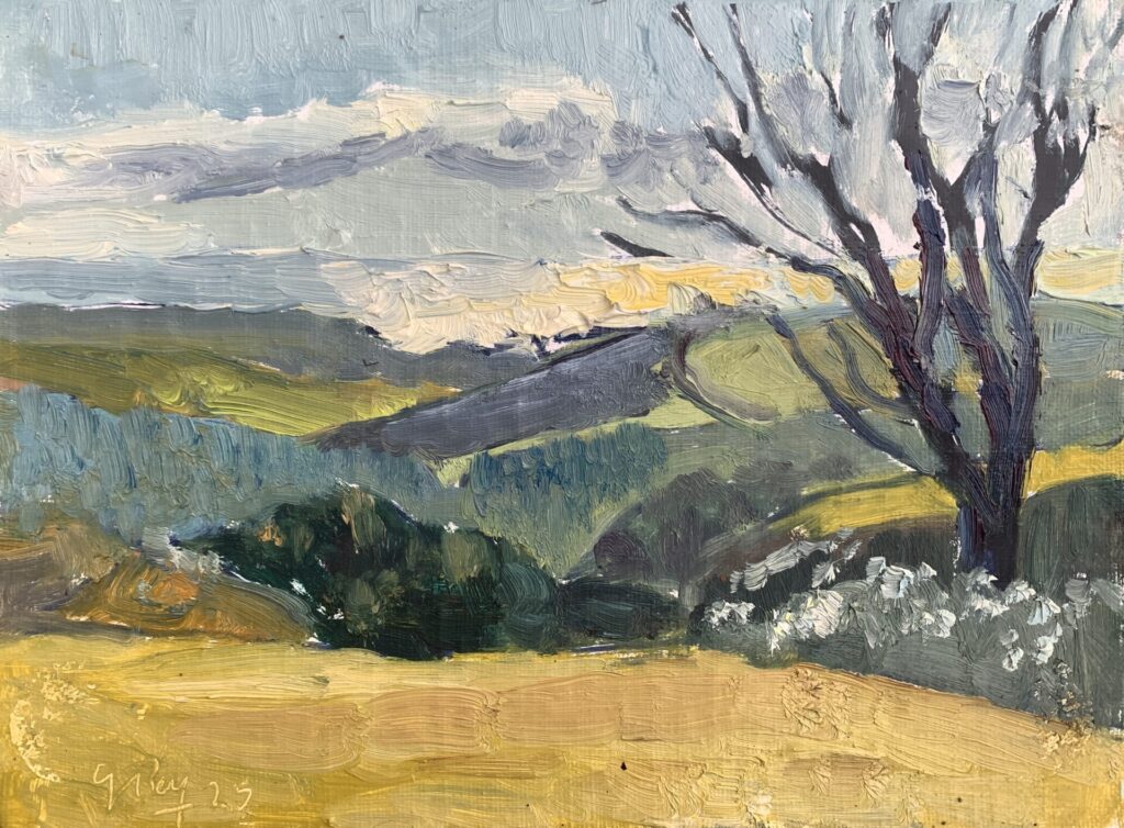 Georgie likes to paint outdoors in the fresh air! She loves colour, composition, shapes and expressive brushstrokes. She calls myself an Expressionist and likes to work with thick paint and bold brushmarkes to the point her work is becoming more abstract.