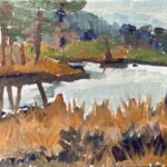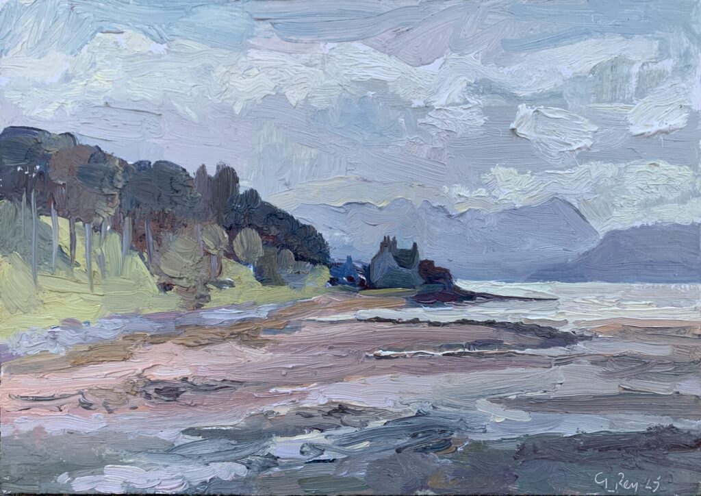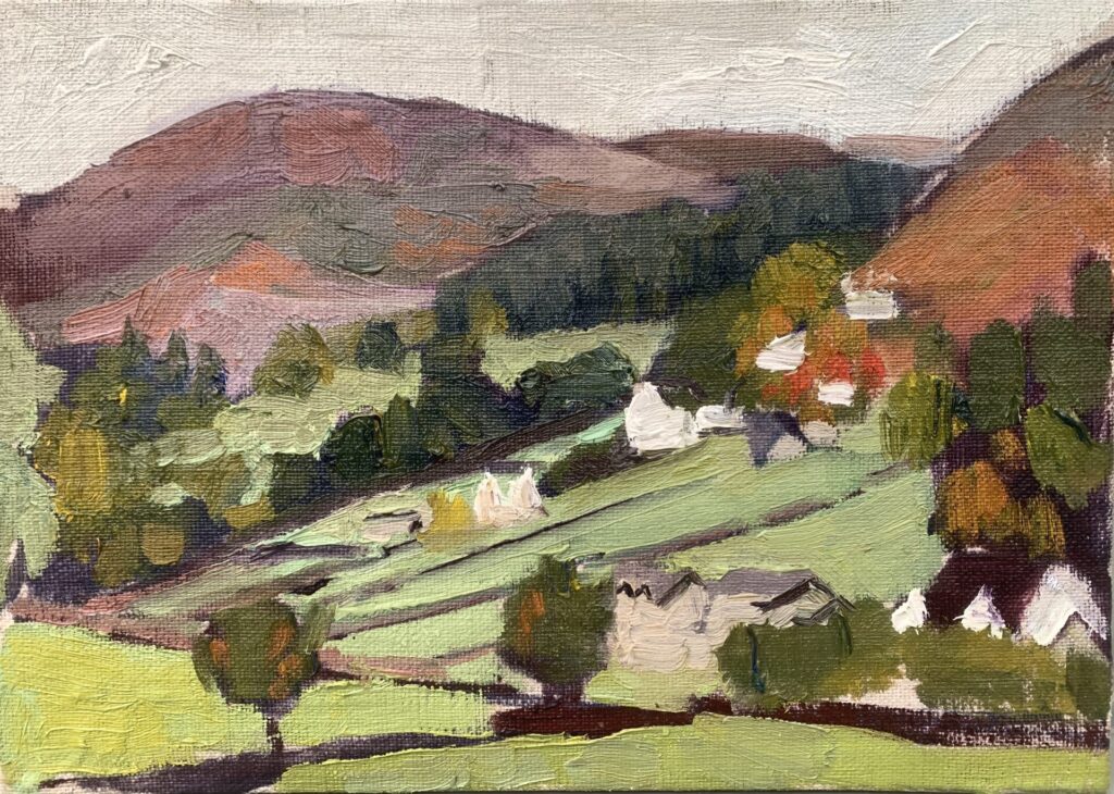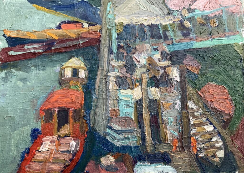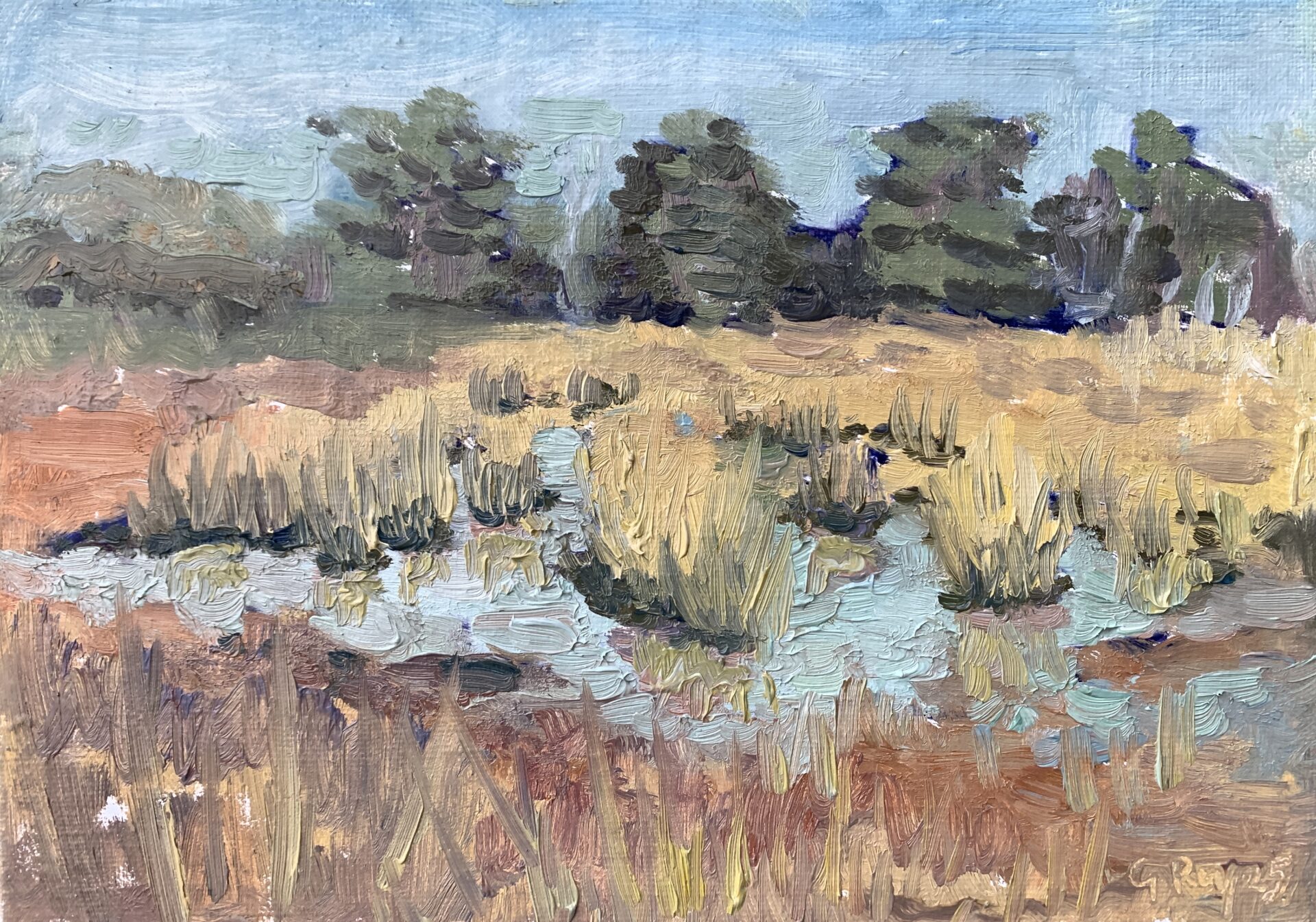 Georgie likes to paint outdoors in the fresh air! She loves colour, composition, shapes and expressive brushstrokes. She calls myself an Expressionist and likes to work with thick paint and bold brushmarkes to the point her work is becoming more abstract.