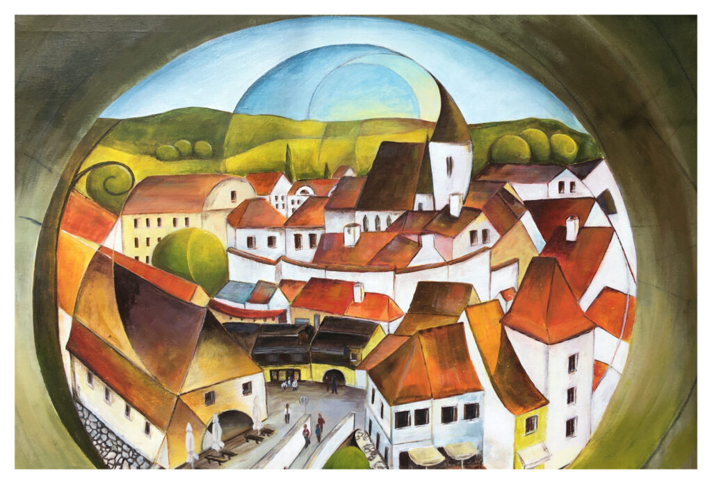 I mostly use acrylics on timber board, natural canvas or textiles, sometimes incorporating natural materials, cardboard or embroidery to create texture and interest. I'm interested in painting portraits and roofscapes but also like to experiment with other subjects.