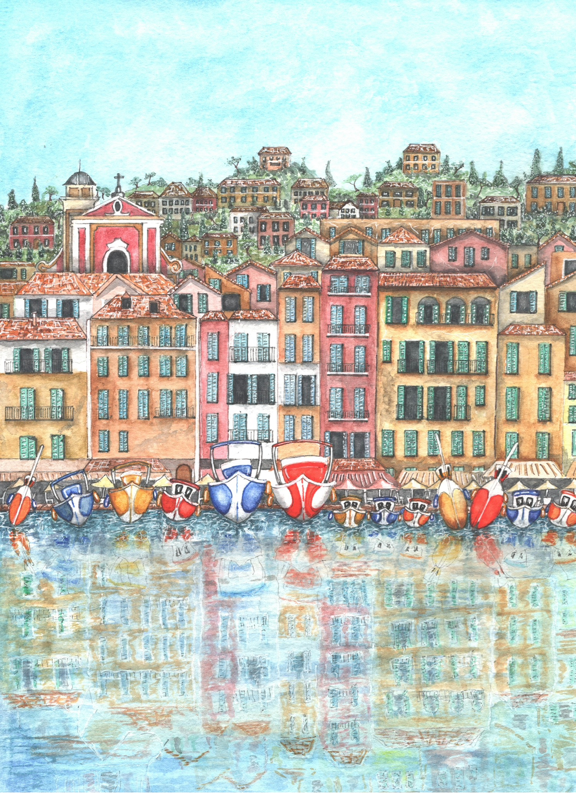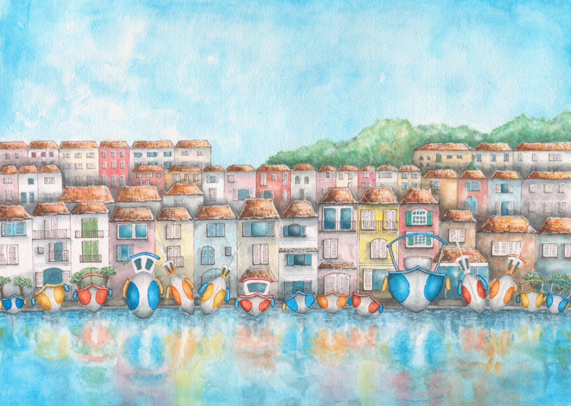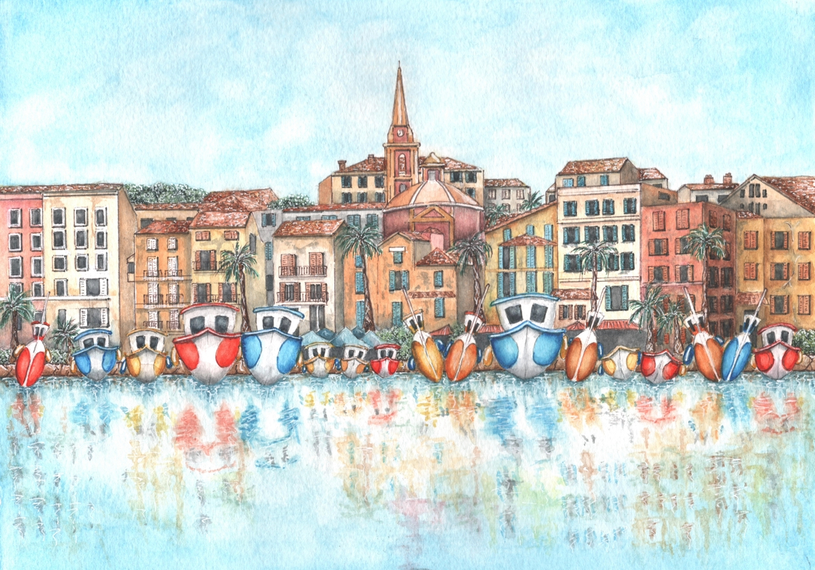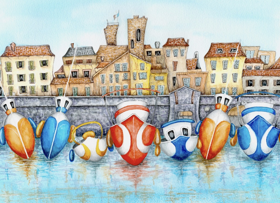 Joanna’s love of all things nautical inspires her watercolour paintings. She infuses her work with a sense of fun, depicting waterside scenes in fresh colour palettes. Joanna’s inspiration comes from the vibrant seaside villages of the Mediterranean, as well as the beautiful harbours and shorelines of the United Kingdom. She is never happier than when she is sitting on a boat or on the quayside, paintbrush in hand, capturing the beauty and character of the places she visits.
