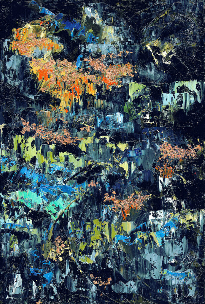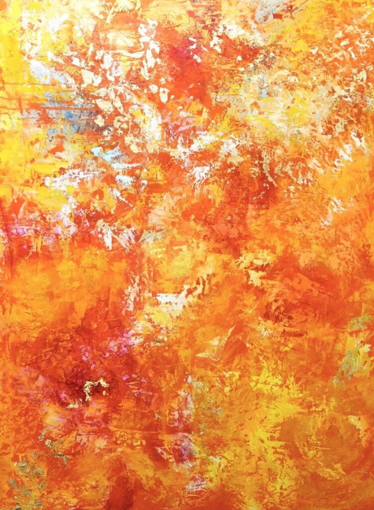 Abstract painter K A Treble creates large‑scale, expressionist artworks that explore the emotional and spiritual power of colour and mark‑making, painting riotus, elemental and textural canvases in a deeply physical process. Working primarily in oil, she builds and erodes layers over time, revealing hidden textures and stories beneath the surface, one mark leads to and changes another, using the palette knife to carve stories and etchings into the canvas. Her work brims with gestures and textures. It may feel familiar at first, but it will leave you feeling hit by something urgent and new.