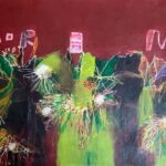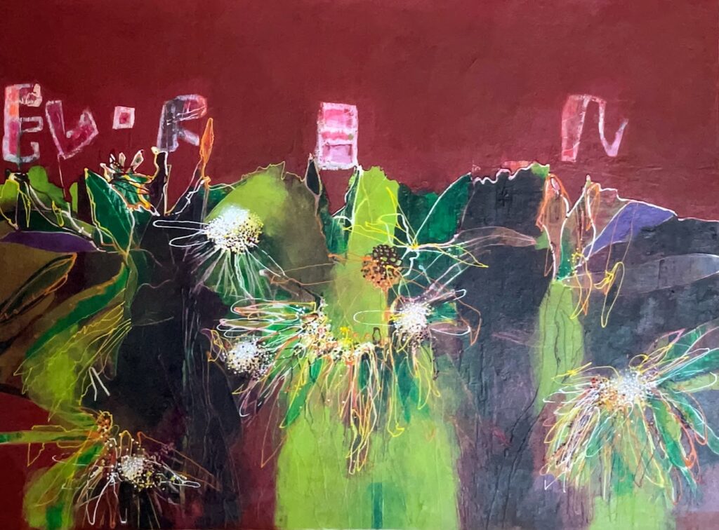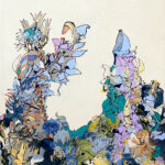 Sylvie’s work draws on history, botany, and on the study of objects associated with travel, trade, science, and daily life. It brings together fragments of the natural world with references to migration, exploration, collecting, and documentation from the 17th to 19th centuries. She is particularly interested in how plants travelled across cultures, and how these movements shaped scientific, economic, and social histories. Working primarily with fluid acrylic on canvas board and paper, Sylvie builds layered compositions underpinned by line drawing, erasure, and areas of colour. Her process allows images to accumulate while resisting narrative clarity or illustrative resolution.