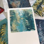 Kez is a mixed media Artist specialising in nature inspired Gelli prints, which she combines with textures and colour, often adding elements of free motion embroidery to her pieces which depict landscapes and smaller more abstract nature based pieces. Kez is an experienced art teacher, who has taught both Adults and children for many years, at national conferences and also weekly in her cosy home studio.